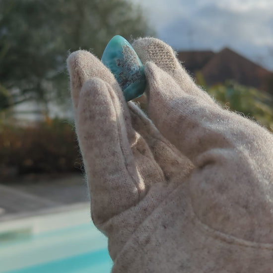 Un œuf Yoni en Larimar taillé, sculpté et poli dans le respect de la Terre, de la masculinité et de la féminité pour une connexion intime avec son équilibre intérieur.