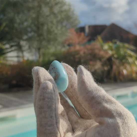 Un œuf Yoni en Larimar taillé, sculpté et poli dans le respect de la Terre, de la masculinité et de la féminité pour une connexion intime avec son équilibre intérieur.