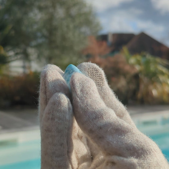 Un œuf Yoni en Larimar taillé, sculpté et poli dans le respect de la Terre, de la masculinité et de la féminité pour une connexion intime avec son équilibre intérieur.