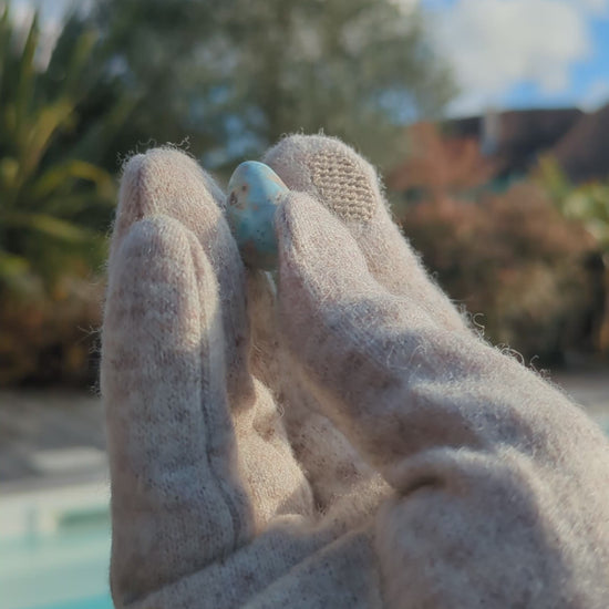 Un œuf Yoni en Larimar taillé, sculpté et poli dans le respect de la Terre, de la masculinité et de la féminité pour une connexion intime avec son équilibre intérieur.